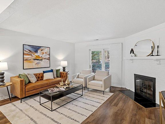 This MOVE-IN READY townhome with 2 bedrooms and 2.5 baths blends modern updates with midcentury character. A striking floating staircase brings your midcentury modern dreams to life, complemented by fresh paint (2025), new carpet in the bedrooms (2025), and brand new stainless steel kitchen appliances including refrigerator, dishwasher, range, and vent hood. Downstairs, enjoy beautiful LVP flooring, gorgeous granite countertops, and a decorative fireplace. Refrigerator, washer, and dryer convey for your convenience. The HOA covers the roof (updated 2016), exterior maintenance, and water service, plus access to community pool amenities. Dixon Drive Park is just a few steps away. Investor-friendly HOA allows rentals, making this an excellent opportunity for primary residence and investors alike. With well-maintained grounds, updated exterior paint, and a prime Raleigh location only 10 minutes from North Hills and Crabtree Valley Mall, this townhome offers convenient, stylish living in Northclift Villages.