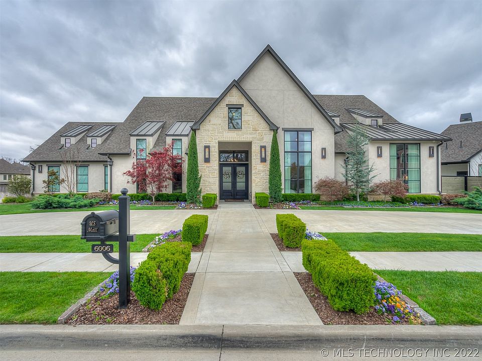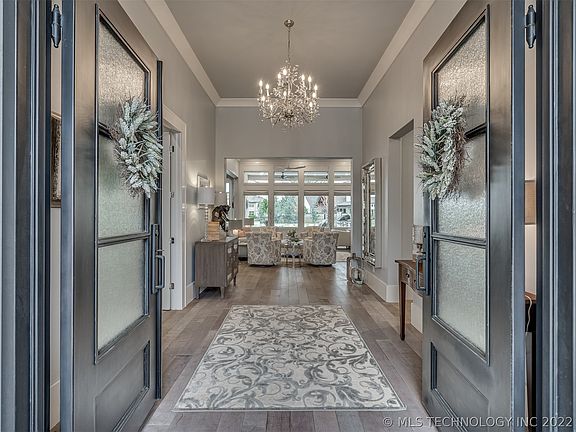 Stunning one story custom built home. Perfect for entertaining w/luxury finishes. 1/2 acre lot in gated Jenks SE w/Lush Landscaping. Grand living w/soaring ceilings, wall to wall windows & views. Peruvian wood floors, Jay Rambo Cabinetry, Quartzite countertops , Thermador appliances & extensive built ins. Saltwater sport pool, spa, water features & firepit. Outdoor Kitchen includes grill, cooktop & 2 refrigerators. Internal expansion/large Attic with room for a gameroom/4th bedroom & bath, ask for details