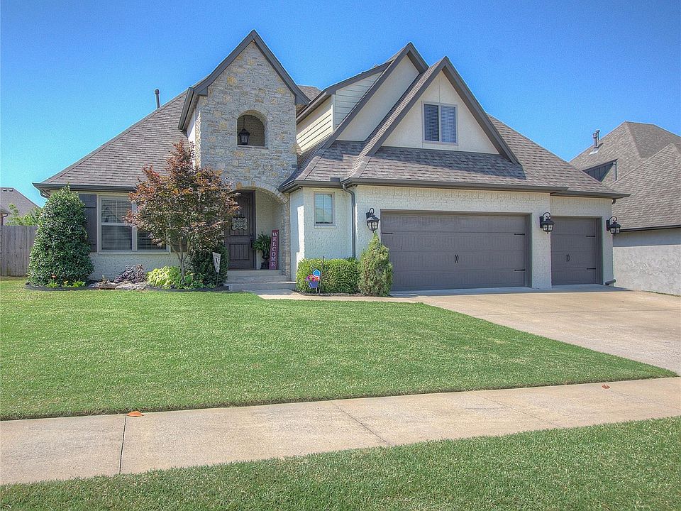 Beautiful 4 bedroom, 3 full bath home located at The Ridge at South County in Bixby. There are several upgrades in this home including hand scraped wood floors, fully tiled hall bath, total surround sound speakers inside and out, custom blinds throughout, and extended patio with fire pit. Also over $1200 in smart home security system. This is a one owner custom home that won't last long.