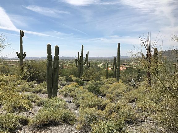 Elevated Quiet interior lot that features City Lights, Sunsets, Black Mountain, Surrounding Valley Mountain Views. This ideal homesite boasts a variety of mature Saguaros and natural desert vegetation. Both Lots to the East and West are built for optimal site planning. Gentle Terrain and drainage easement to the West provides abundant natural open space from neighboring properties.