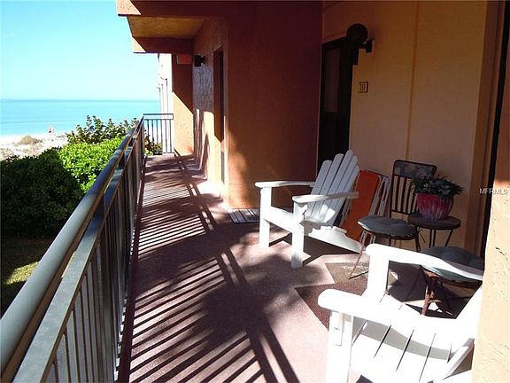 Rarely available unit in Playa Encantada, one of the most desirable and well managed Gulf front complexes on Anna Maria Island! This two bedroom two bath unit is situated towards the Gulf side of the building with beautiful views from the balcony/sitting area at the entryway and overlooking the pool and spa, with peeks of the Gulf beyond from the courtyard lanai area. This unit comes fully turnkey furnished, with newly painted walls, trim, and neutral wallpaper. Blinds and window treatments have been replaced in 2015, along with new lanai screen doors. This unit is in excellent condition, with owner care for years! The complex offers many amenities, such as undercover parking, tennis courts, shuffleboard, and beautiful heated pool and separate large spa. Must see! Come experience the beach on Anna Maria Island!!!