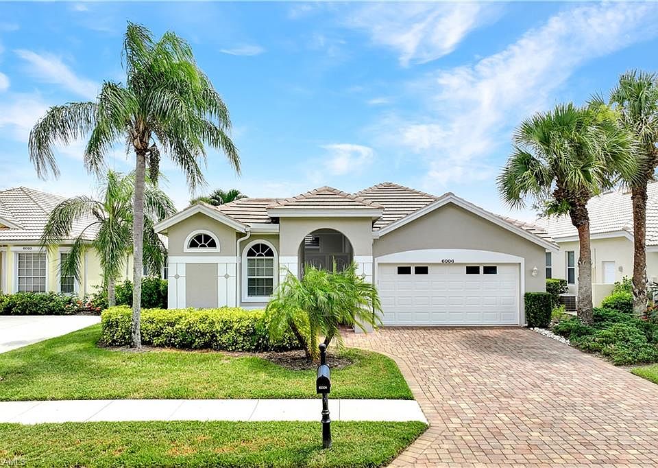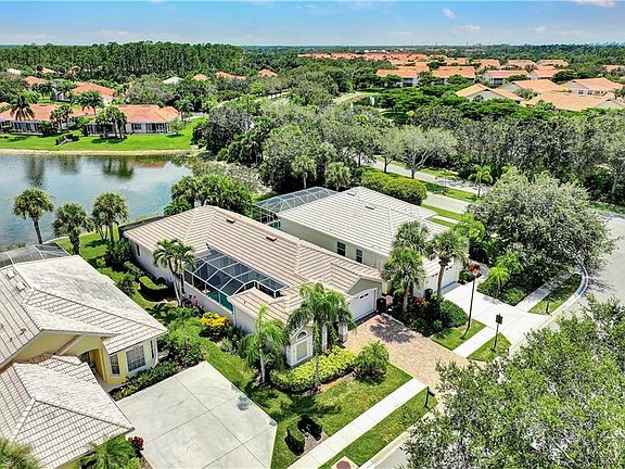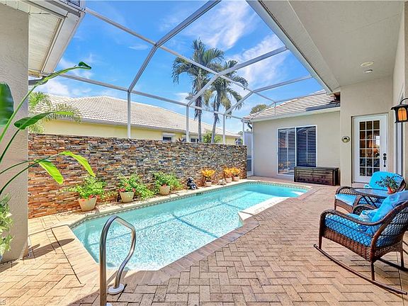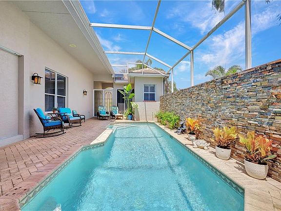 H11486-Beautifully updated courtyard home with sweeping lake views located in the North Naples community of Carlton Lakes. This home features 2 interior bedrooms and bathrooms as well as a cabana suite with 1 bedroom and 1 full bath which is great for entertaining guests or can be used as a work from home office. The courtyard has a heated pool, brick pavers and stone wall detail. The interior of this home has volume ceilings, large tile laid on the diagonal throughout the entire home, and beautifully updated kitchen that has white cabinetry, quartz countertops and stainless steel appliances. Your master suite has his and her closets as well as an updated master bath with white shaker cabinets and quartz countertops. Enjoy gorgeous views from the expanded back lanai that over looks the lake, fountain and preserve. Other notable features include a newer roof (2021), recently painted exterior, updated landscaping and brick paved driveway. Carlton Lakes amenities include a master clubhouse with 60 ft lap pool, tennis & bocce courts, tot lot, fitness room and fishing pier. This home is being sold with a 1 year home warranty for the new buyer at closing.