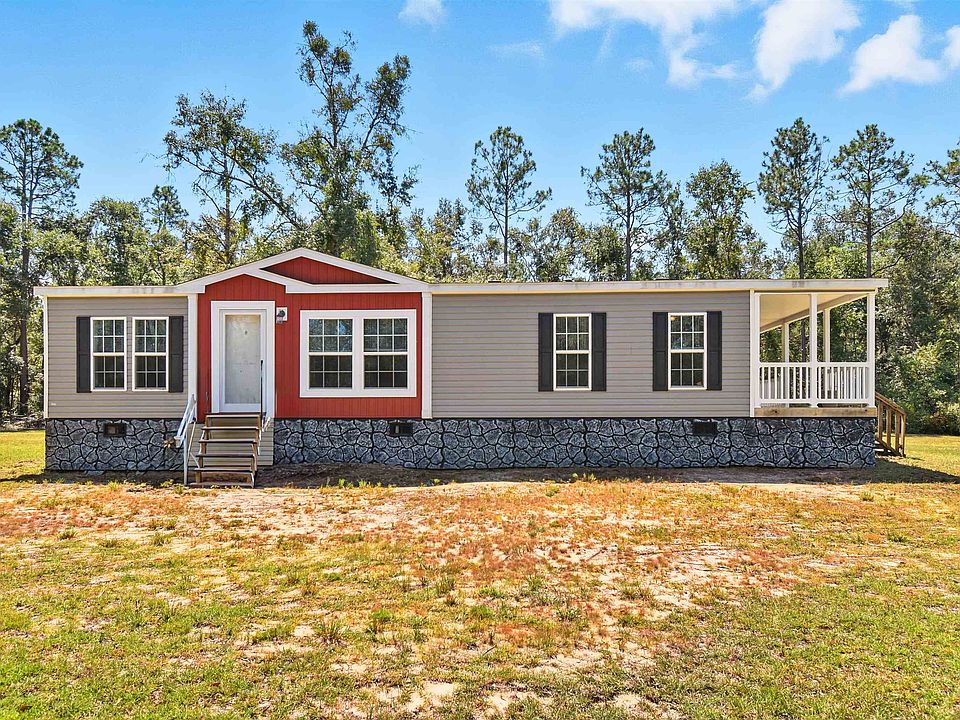 Welcome to your peaceful retreat in North Taylor County! Just 40 minutes from downtown Tallahassee, this 2015 doublewide manufactured home offers the perfect balance of modern comfort and country living. Nestled on 1.97 acres of high and dry land, this property provides privacy, serenity, and endless opportunities for those looking to slow down and embrace the Old Florida lifestyle. Step onto the spacious front porch where you can relax and enjoy the sights and sounds of local wildlife. Inside, you’ll find 1,248 sq ft of thoughtfully designed living space, currently configured as a 2 bedroom, 2 bathroom home but easily convertible back into a 3/2 if desired. The open floor plan features a light-filled living room, a beautifully upgraded kitchen with custom cabinetry, a breakfast nook, and an eat-in bar—perfect for entertaining or enjoying casual family meals. The oversized primary suite includes a large closet and private bath, while the additional bedroom offers comfort and flexibility for guests, family, or a home office. Outside, the acreage offers plenty of space for a garden, small livestock, or even a chicken coop—making it an ideal property for homesteaders. Whether you dream of raising animals, planting a vegetable garden, or simply enjoying wide open space, this land is ready for your vision. There is no HOA and no restrictions on this property. Located just a short drive from the Gulf of Mexico, multiple rivers, hunting lands, and nature trails, this home is perfect as a permanent residence, weekend getaway, or downsizing option for those seeking a quieter lifestyle. Don’t miss this chance to own a slice of country paradise and call this place Home!