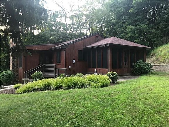 This mid century cedar and stone ranch sits in a serene setting on three acres with a screened in porch to enjoy the cool night air. This newly-remodeled home is move-in ready with many new beautiful and functional amenities. The contemporary kitchen is eat-in with new vinyl flooring, granite counter top, all new cabinetry, new stainless steel sink, and all new Whirlpool stainless steel appliances. All of the lighting in the house has been replaced and recessed lighting and dimmers were added throughout the house. The open-concept living room has a stone fireplace and two sky lights. The windows are Pella and have glass inlaid interior shutters that add charm and can be used to shade the natural light. Both bathrooms have been fully remodeled with stunning fixtures. The main bath has a granite countertop. The entire home has been freshly painted and the patterned hardwood flooring was refinished. The basement was painted with dry lock and pebble stone was installed on the floor.
