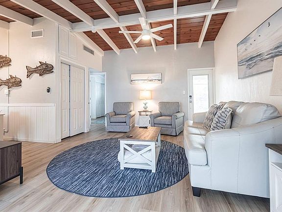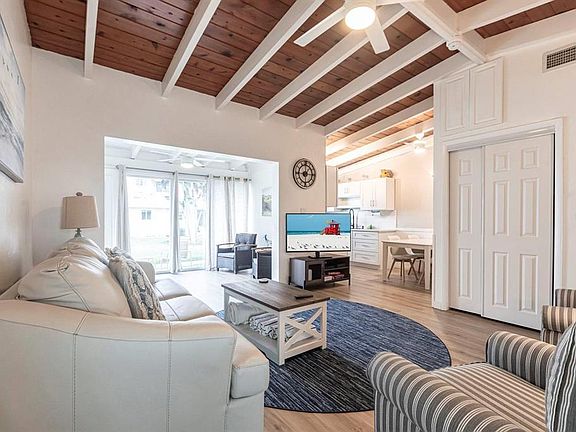 Starting from $179/night! Experience the charm of Villa 54, a 1-bedroom, 1-bathroom retreat at Casa Mar. Relax in the luxurious king-sized bed in the master bedroom, complemented by a cozy sleeper sofa in the spacious living area. Prepare gourmet meals in the fully equipped kitchen that seamlessly flows into an elegant dining space, perfect for entertaining or quiet meals. Outside, enjoy the convenience of a private carport just steps from your door. Casa Mar offers an exclusive range of amenities, including two inviting swimming pools, tennis, pickleball, and shuffleboard courts for active pursuits. Savor alfresco dining at multiple grilling stations with picnic tables, or unwind at two serene beach pavilions overlooking more than 200 feet of pristine private beachfront. Stay refreshed with easy access to multiple laundry facilities within the community, and explore the area effortlessly with a Siesta Key trolley stop conveniently located at the front, providing easy access to local attractions and vibrant nightlife. Embrace the luxurious coastal lifestyle at Villa 54, where every moment promises relaxation, adventure, and the natural beauty of Siesta Key right at your doorstep. Call office for information.