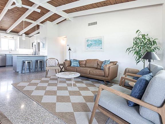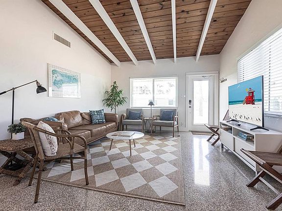 Starting at $210/night! Escape to coastal comfort in this charming 2-bedroom villa just steps from the beach. This beautifully furnished retreat boasts a bright and airy living space with vaulted ceilings, exposed wood beams, and abundant natural light. The open-concept living area features cozy seating, a large flat-screen TV, and stylish coastal decor that perfectly blends comfort with elegance. Both bedrooms are tastefully decorated for relaxation, while the full kitchen and dining area make meal preparation and entertaining effortless. Step outside and you're moments away from sun-soaked shores and refreshing ocean breezes. Ideal for a family getaway, romantic retreat, or friends' vacation, this beachside villa offers the perfect mix of comfort, style, and location. At Casa Mar, indulge in resort-style amenities including two sparkling swimming pools, tennis, pickleball, and shuffleboard courts for friendly competition under the sun. Enjoy grilling at multiple outdoor BBQ areas with picnic tables, or unwind at one of two beach pavilions overlooking over 200 feet of private beachfront. Stay fresh with multiple laundry facilities conveniently located within the community, and explore the area easily via the Siesta trolley stop right at the front, eliminating the hassle of driving. Embrace the beach life at Casa Mar, where every moment is filled with sun, sand, and endless possibilities! Call office for information.