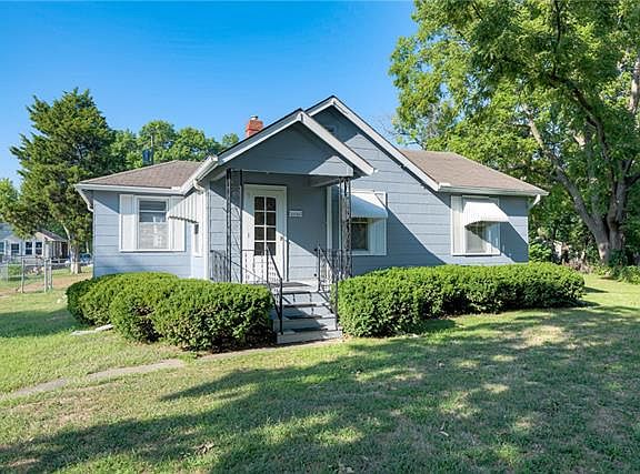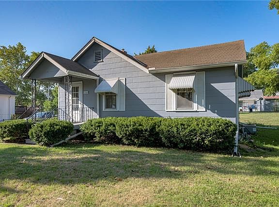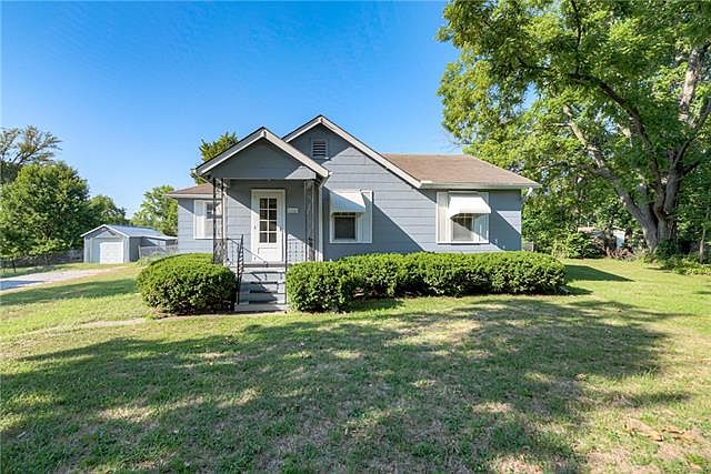 Charming and clean ranch with convenient location! Neutral colors throughout, big eat-in kitchen, claw foot soaker tub, and oversized bathroom. Fully fenced yard on a big lot, detached garage and shed with electricity - great for projects or storage! Great highway access. Very well maintained property - water tank only two years old, plumbing has been updated, and GoogleFiber ready. Enjoy a garden in the additional side yard, or watch the Worlds of Fun fireworks from home!