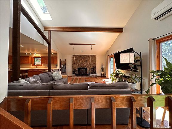 Come see this meticulously maintained Pinery home nestled on a 1/3+ acre lot with mature Ponderosa pines with a large backyard, enclosed by a new split-rail fence that is further secured with mesh wiring, and private patio and hot tub pad. The main living space is an open concept style that is full of natural light, aided by skylight(s). The kitchen has slate flooring, a large island and programmable heated floor that makes cooking and entertaining comfortable in any season. The dining room is open to the kitchen and living room areas. The Family Room has a unique swing in front of the Quadra high efficiency wood-burning fireplace. The Pella windows throughout the home bring in tons of natural light all day long. The lower level features a family room, as well as a bedroom and a remodeled 3/4 bathroom. The garage is oversized and has tons of room for a work-bench and storage. The garage is 31' X 28' with the last 8' raised a few inches off of the parking pad that makes a great space for storage and/or a workbench. There is an ADT Alarm System with glass break sensors throughout the home. The sensors are on all exits, including the garage. Combo CO and flash fire detectors are included in the system. Sellers installed the AC mini-splits that will support 3 head units, 2 currently in place. All window coverings, drapes and shades, will transfer with the real estate. The hot tub is 2 years old and is negotiable. The garage fridge, ring doorbell and gun safe not included.