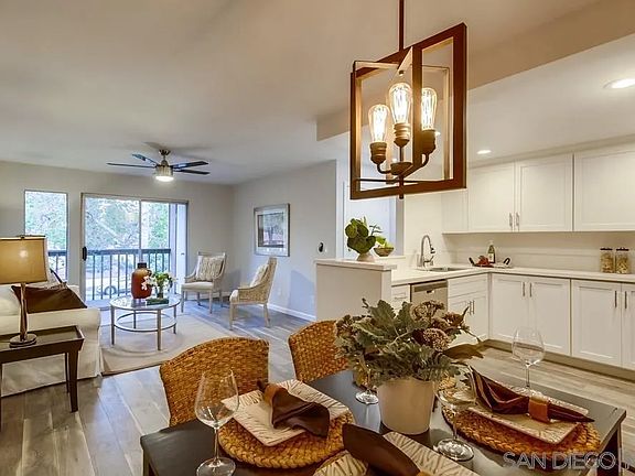 Well maintained Mission Valley condo! This wonderful 1 Bed 1 Bath condo is ready and waiting for you to move in. Has had countless upgrades including updated doors, flooring, appliances, kitchen sink, resurfaced kitchen cabinets, recessed lighting in dining area and living room. Unit also features newer dual pane windows and sliding doors for better energy. Enjoy sunny days and a social atmosphere at the inviting pool or get a nice workout in at the gym! This complex and spectacular central San Diego location will not disappoint. Walking distance to the new Snapdragon stadium so perfect for entertaining, concerts and event tailgating. VA Welcome! Parking is 2 placards. 1 assigned, 1 designated assigned area.