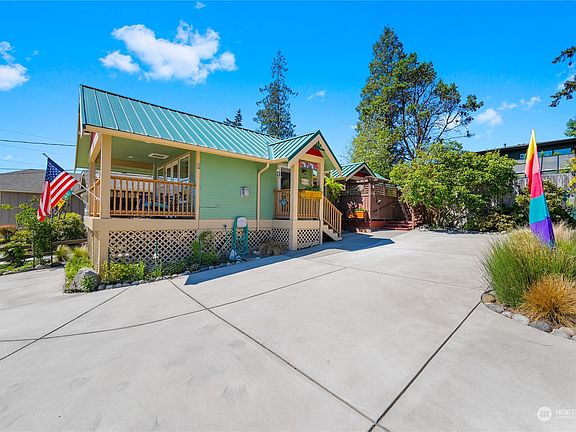 Your new Pied-à-terre! A totally remodeled 1930s bungalow just steps from the beaches of Anacortes’ Washington Park. A private water view deck out front w/ French doors. Inside, cathedral ceilings & plank flooring in great room w/tiled fireplace surround, kitchen w/eating space & new lighting, a new fridge & dishwasher. A unique tapestry room divider, ¾ bath w/new tiled-in shower, laundry & walk-in closet space. Outside, surrounded by a private fenced-in patio, new landscaping & lighting in the terraced gardens & greenhouse, a fun sidewalk fire-pit next to a custom concrete driveway. Simply remarkable & charming beyond belief. You can walk to the Washington State ferry for a trip to the San Juans. Next door MLS 2244567 4 sale.