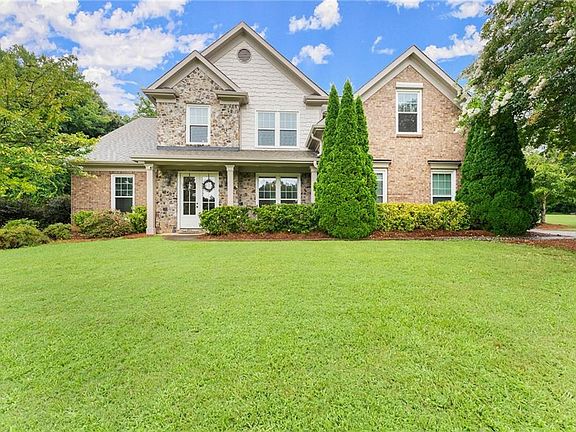 Beautiful 4-sided brick home in North Hall County, offering 4 bedrooms, 3 baths, and plenty of space for the whole family. The main level features a large living room with a stunning stacked rock fireplace, separate dining room, and a spacious kitchen with a view to the family room and breakfast area. You’ll love the oversized mud/laundry room with its own exterior entry, plus a dedicated office space. The master suite is on the main level with double vanities, a walk-in closet, and lots of room to relax. Upstairs, you’ll find 3 additional bedrooms and more space for everyone to spread out. Enjoy mornings and evenings on the covered rear porch overlooking the private backyard on a level 1.31-acre corner lot—perfect for kids to play or entertaining guests. Upgrades include new windows (2019), fresh interior paint, and a roof replaced in 2014. No active HOA, close to North Hall High School, and move-in ready. Don’t wait—this one feels like home the moment you walk in!