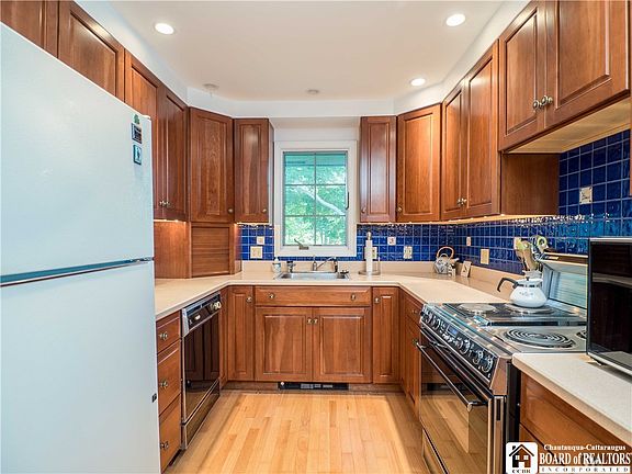 Nestled on a generous 1.6-acre lot, this 4-bedroom, 3-bathroom single-family residence is the perfect opportunity for investors, vacation home seekers, or those in search of a primary residence. The property boasts a spacious family room that opens onto a partially wrap-around deck, perfect for enjoying the outdoors. The large main bedroom features an en-suite bathroom, with an additional room that could function as a second family room, office, or additional sleeping space, complete with private deck access. This home also features an expansive yard with shed, two separate attached heated garage spaces, and three additional bedrooms; one of which is set up as the perfect bunk room. Keep in mind, this home does need some updating, offering the perfect chance to customize it to your taste. This home is located in the Chautauqua Shores community the has a community park, Chautauqua Lake access, and the ability to join the community dock. You won't want to miss all that this home has to offer.
