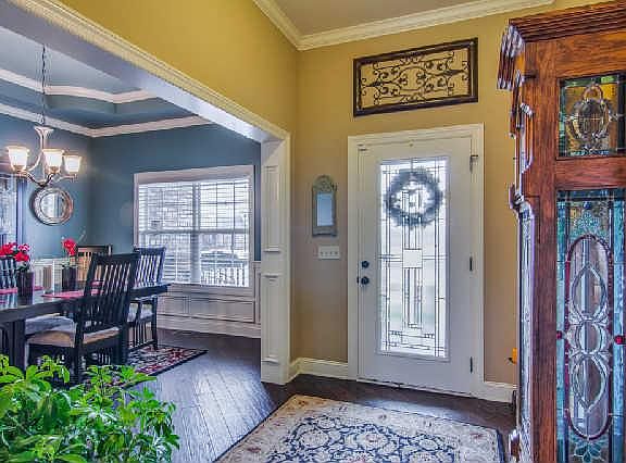 All brick builder's custom home w/many extras, 10 ft ceilings thru-out downstairs, handscraped wood flrs, updated fixtures, gorgeous covered deck, master bath w/ jac tub & lrg tiled shower, 2nd bedrm has 2 walk-in closets, & wet bar in bonus.