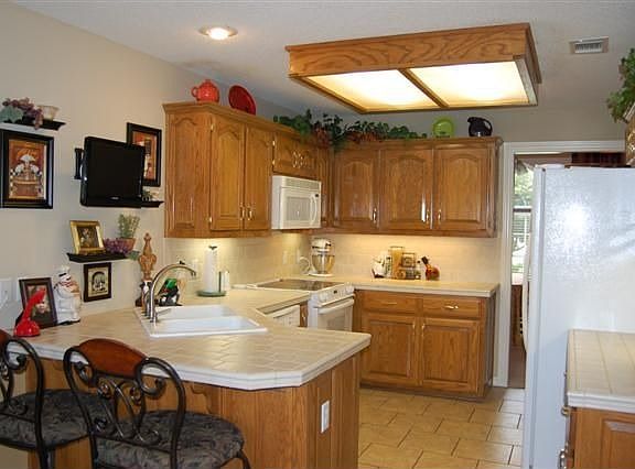 Riley Farm! WOW, like new condition! A pleasure to show! Gorgeous property from the high ceilings, crown moldings, beautiful lighting though-out to the wonderful kitchen with tile counter tops w/decorative edge & breakfast area. Living room with fireplace & formal dining room. 4 Bedrooms, 2 baths, 2 car garage and built in 2000. The covered patio and golf course like front & back yards really set this property off. Brick/vinyl exterior, large professionally landscaped yard, wood privacy fencing.
