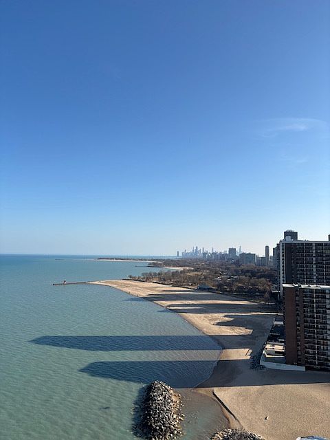 Stunning executive two bedroom apartment on the lake and by the beach HRW,DSS,GRNT. Gorgeous panoramic view of the lake, beach, and the city from all three balconies sunny and bright all the time. Extensive modern renovation of the entire apartment, new elegant kitchen with granite countertops, stainless steel appliances (electric cooking), beautiful, ceramic tile flooring, huge living room with a gorgeous view of the city, beach, and the lake as well as new hardwood floor throughout. Two bedrooms, with a beautiful view of the city and the lake, hardwood flooring, generous, walk-in closet in master bedroom. Two full baths with ceramic tiles and granite countertops. Fast, speed, Internet, cable, Walter, fitness center 24/7 are included in the monthly payment amount. Secure entry to the building with 24 hour Doorman, In addition, free outdoor pool during the summer with sun deck and private party room is available. Laundry is also available inside the building. No pets allowed. Walking distance from the public transportation and Loyola university campus. Water, garbage and association fee is included in the rental . Renter pays for electric bill.