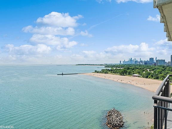 If you are looking for luxury and elegance, this deluxe property at Malibu is a must-see! Completely renovated from top to bottom, this condo boasts an incredible one-of-a-kind floor plan filled with luxury high end finishes. Whether you are driven by the lazy days of summer or the fast pace of our city, this unit has it all. Open your eyes to the STUNNING views of Lake Michigan as you sip your morning coffee in bed or on the balcony. If the city excites you, just turn your chairs on this 38' balcony and you have a stellar view of the bustling Edgewater neighborhood. Either way, the choice of the view is all yours. The exquisite chef's kitchen is outfitted with quartz countertops, high-end cabinets, top notch stainless-steel appliances, 32 Bottle Dual Temperature Zone Wine Cooler, under the cabinet lighting, and an exceptional island. All of this can be yours whether you choose to make an intimate meal or entertain friends in ambiance of your dream kitchen. For your privacy, the unit boasts two separated, and incredibly spacious bedrooms with large walk-in closets and organizers, as well as direct access to the massive balcony. If that isn't enough, just know that serenity awaits in one of the two fully renovated modern bathrooms. The primary bathroom boasts an amazing soaker tub, rain shower fixtures, custom tilework, and a modern dual sink vanity. Not to be forgotten, the on-suite bathroom is complete with custom countertops, a new shower/tub combo with wraparound tilework, and relaxation at your command. This place is really a gem! 24/7 doorman offers peace of mind and around the clock security. This dog friendly building has it all! The well-managed lakefront building has never had a special assessment. Amenities include storage space, outdoor swimming pool, sauna, sun deck, party room, dry cleaners, bike room, and brand-new fitness center and onsite laundry facilities. In addition, there is 24/7 covered valet parking for $150 a month. Centrally located to everything: Mariano's, Whole Foods, bus, train, Lake Michigan beaches, running path, and numerous restaurants!!!!