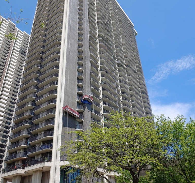 Spacious 34th floor corner 2 bed 2 bath offers three huge balconies with panoramic city and lake views! Gorgeous kitchen with beautiful dark wood cabinetry, breakfast bar, tiled floors, pantry and stainless steel appliances. Wood laminate flooring throughout all living areas. Recessed lighting with dimmers to set the mood. Excellent closet and storage space. Oversized master bedroom accommodates king size bed and features an extremely large walk in closet. Full-amenity building provides 24 hour door-staff, fitness center, library, party room, outdoor pool, & valet parking. Walk to the beach, Mariano's & CTA access nearby, dining and entertainment along Broadway.