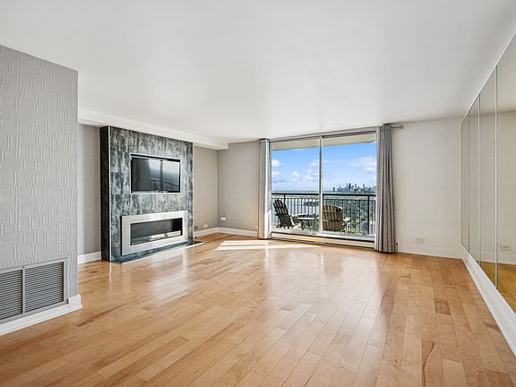 Extra large south facing 1 bedroom (1000sf) with breathtaking lake and skyline views! The spacious open-concept living and dining area features a custom-built electric fireplace while the kitchen is sleek and modern and is outfitted with high-end Bosch appliances. The updated bathroom and generous walk-in closet add to the home's large feel. Floor-to-ceiling windows flood the space with natural light, hardwood floors throughout and a large private balcony that runs the length of the unit offers stunning views of the city and water. Public transportation (Bus & Train ) only 3 minutes walk. 24 hour Doorman and maintenance staff. A variety of restaurants, grocery stores, Walgreens, only 5 minutes walk. Unit includes a separate mini-freezer. Unbeatable location-just steps to Mariano's, Whole Foods, public transit (bus & train), Lake Michigan beaches, the lakefront trail, and countless dining options. This full-amenity building offers a 24-hour doorman, on-site management, an outdoor pool with sun deck, party room, fitness center, and valet parking. Utilities included in the monthly rent except electric! Valet parking available.