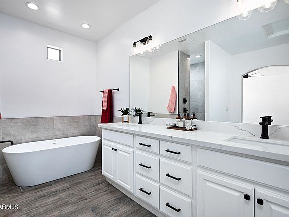 Remodeled 5 Bedroom w Office on horse property with no HOA! Country living in a peaceful and spacious home with a modern farm house remodel. List of updates - New Countertops, flooring, LED lights throughout, bathrooms, showers, paint inside and out, new block wall around west facing part of the home for privacy and temperature control, new bath sinks and fixtures, appliances and more!Seller is a licensed real estate agent in Arizona
