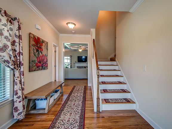 Home with adorable front porch leads to open floor plan, 3-bdrm, 2.5 bath, bonus room, gorgeous kitchen with upgrades like white cabinets and unique backsplash, ceiling fans in all rooms, gas stove, gas fireplace, gas heat, electric cooling, neighborhood, park, saltwater pool with kiddie pool, common greens HOA-$40/mo. Open house Sun 6/10 2-4pm