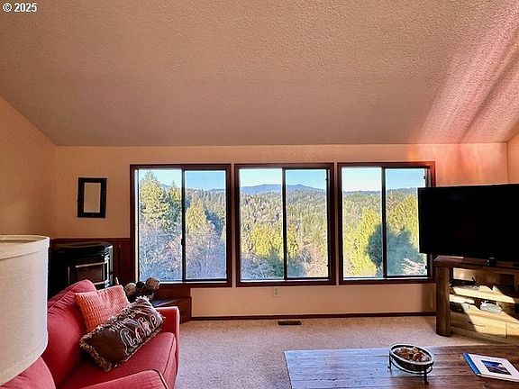Update! Brand new, 30 year roof as of July 2025. Wonderful tri-level home with views of the mountains and  Mercer Lake can be seen from most rooms in this home. As you enter into the home you can be found on the main level where the kitchen and dining rooms welcome you in. The large kitchen has newer paint, a newer double oven (2023), tile counters and a sitting area. The dining room has tall, vaulted ceilings and a slider out to the deck where you can entertain your guests with a view. The living room is just a few steps upstairs and has a wonderful, newer pellet stove (2023) and glorious views of Mercer can be seen through many windows as well as another seating area with a giant slider to a deck for more entertaining. Both decks have been refinished recently. Upstairs from the living room you'll find on one side a 112 sq ft loft with a full length bench with storage underneath where you can relax or work on projects also a storage room which houses a newer hot water heater. The other side on the upper level is the Primary suite with views of Mercer right outside your window. The Primary Bathroom has an exterior vanity and a walk-in shower. Downstairs you'll find the other two bedrooms both with Mercer views and a full bathroom as well. On the main level you step down to a half bath and the garage entry. This home has a double garage, an 8' by 10' freestanding shed to the left for storage plus a 6' by 21' workshop and an additional 4' by 7' storage space. All 3 with lighting and electricity. There is ample parking space for vehicles, RVs or toys on the 21' by 37' parking pad. The front yard is fenced for your pets. Keep in mind, this property has lake access rights to Otter Cove on Mercer Lake where you can find a community picnic area, boat launch ramp, a restroom, places to store your lake items, parking and community dock. The dues are $75 annually. Don't miss your opportunity to schedule your own viewing today, this home has so much to offer.