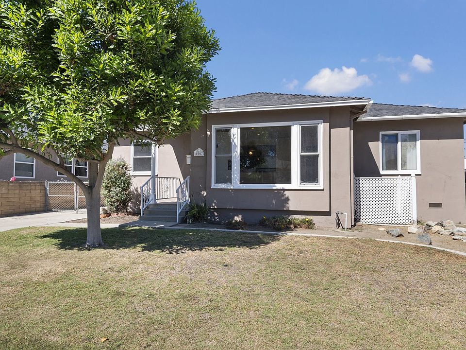 In a suburban neighborhood of Lakewood, on a quiet street, is a 1066 sqft, 3-bedroom, 1-bathroom single family home move in ready for the next lucky buyer to call this rare one "home". A paved driveway surrounded by a neatly manicured lawn leads to the front of the house and upon entering you are greeted with walnut toned laminate flooring, all throughout the living room, that's flooded with natural light. A dining room that transitions easily into an L shaped kitchen, which features built in appliances and tons of cabinetry for storage. A large step-down enclosed patio, right off the dining room, making the whole venue the perfect space for hosting and entertaining guests. A hallway that connects a common bathroom with 2 bedrooms, both of which have built in closets. A third bedroom, at the left of entry, with a built in closet. Access from the enclosed patio to the large backyard, with enough space to build a pool. Home includes a detached two garage that can also be used as nifty workshop and and individual laundry room with washer/dryer hookup.