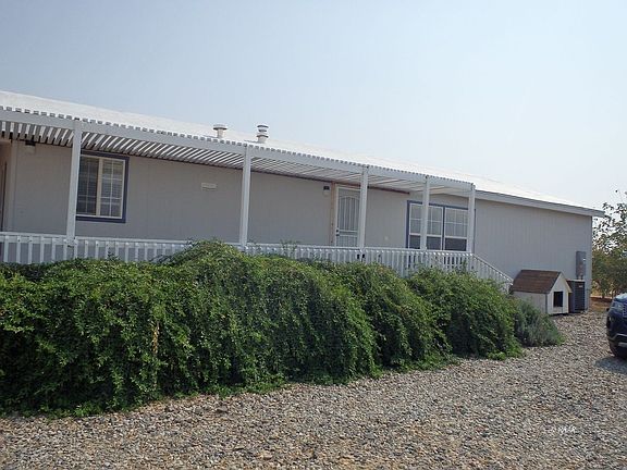 Oh my! Gorgeous setting with 360 views! Five ft high no climb fence w/double gate. Gravel driveway & ring of pine trees that provide wind break! Fruit trees, grapes, mulberries, Pluot, pomegranites, pistachio orchard! Patio cover & railing on rnain deck . Inside you will be welcomed by fresh paint and pergo flooring, high ceilings, & beauty all around..Sun room to the left looks into the formal living rm w/wood burning fireplace.Kitchen has new fridge, stove, dw, mw, touch faucet. Lots of cupboards! New light fixtures. 2 guest bedrooms w/pergo floors. Inside laundry rm w/washer & dryer.More cabinets for storage.Guest bath has tub/shower.Next is big family rm w/fan & lots of shelves.Large master bedrm features a sloped ceiling w/fan, 2 windows;door to go ouside to see the gorgeous view.Amazing bathrm has oval soaking tub,2 sinks, large double hung closet! 15 PAID solar panels AND Rainsoft water filtration system.14x8 shed w/skylite on raised foundation.Septic tank. 4 party shared well; $40 monthly. Natural gas. Roof recovered w/insulation layer 2 yrs ago. For beauty and peace, this is a jewel!
