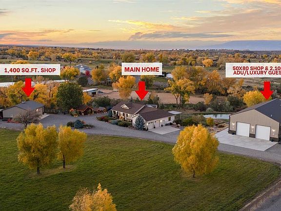 MONTROSE JUST GOT LOUD!! Two addresses, Two homes, and ONE EPIC LIFESTYLE! 60075 & 60085 Oak Grove Road is a rare, gated, 4+ acre compound with no HOA and features a combined total of 6 bedrooms, 5 bathrooms and over 4,200+ sq. ft of living space that delivers the full trifecta of luxury, land, and legendary living! It's where horses meet horsepower and every dream you’ve ever had suddenly has an address! The main residence isn’t just built-it’s crafted and is a 2,100 sq.ft. 3-bedroom, 2.5-bath ranch-style stunner built by Western Slope icon Paul Sinner. It is the perfect mix of mountain serenity & high-end sophistication. Every detail was designed to impress—from radiant-floor heating throughout, that keeps toes toasty year-round, to vaulted ceilings and sunlight soaked rooms that make the space feel limitless. Fresh paint, plush new carpet, and custom plantation shutters add a refined touch, while the kitchen brings the heat with stainless-steel appliances, gleaming granite countertops, double ovens, and a brand-new refrigerator. Just off the kitchen, you’ll find a spacious walk-in pantry, a convenient half bathroom, and a well-appointed laundry room designed for both function and style. Off the main living area, two additional guest bedrooms (one of which has been virtually staged) and a full bathroom provide comfort and privacy for family or visitors. The Primary Suite is where style meets swagger—dual closets, dual vanities, a tub made for bubbles and playlists and a large walk-in shower. Enjoy the direct access to the brand new trex deck-half shaded, half sun-kissed, and already wired for your future hot tub happy hour. It’s the ideal backdrop for al fresco dining, weekend BBQs, or sunrise coffee with mountain views. A fenced-in dog run gives Fido and friends room to roam. Just steps away is the real showstopper: The jaw-dropping, heart-thumping, heated and fully insulated 50x80 fully permitted GARAGE MAHAL—the undisputed crown jewel of Colorado horsepower heaven! This is where utility meets pure adrenaline. Outfitted with two 14-ft and two 12-ft roll-up doors, its own bathroom, an RV dump, and an attached lean-to, it’s a flex space built for boats, RVs, rock crawlers, ATVs, trailers, and an entire car collection—because one toy just isn’t enough! Every inch is engineered for performance and precision! A private, interior entrance leads to the attached 2,000+ sq. ft. ADU/private guest house—plus a separate exterior entrance for complete independence and privacy. Inside, this luxury guest residence impresses with three bedrooms, two bathrooms, and dual Primary Suites—one conveniently located on the main level with laundry and another upstairs with walk-out access to the Trex deck and sweeping Uncompahgre valley views! A fourth non-conforming bedroom with Pergo flooring—currently used as a craft room (has been virtually staged) would make the perfect home office or studio. Complete with its own septic system and separate address, this ADU offers full independence for guests, in-laws, or rental income potential. It’s the ultimate guest trap— good luck getting anyone to leave! Think you’ve read it all? Think again! This property keeps the plot twists coming with a second 1,400+ sq. ft. insulated outbuilding with a lean-to and RV hook-ups, loafing shed, and 2.5 acres of fenced and irrigated grass pasture ready for horses or hobby farming. A private stocked pond sparkles at sunrise, while a greenhouse, four chicken coops, and fruit-loaded orchard deliver farm-to-table perfection. With 50 bales of hay per cutting, a two-story fort for kids or kids at heart, and a studio for art, fitness, or focus, this isn’t just a place to live—it’s a story waiting to be told.