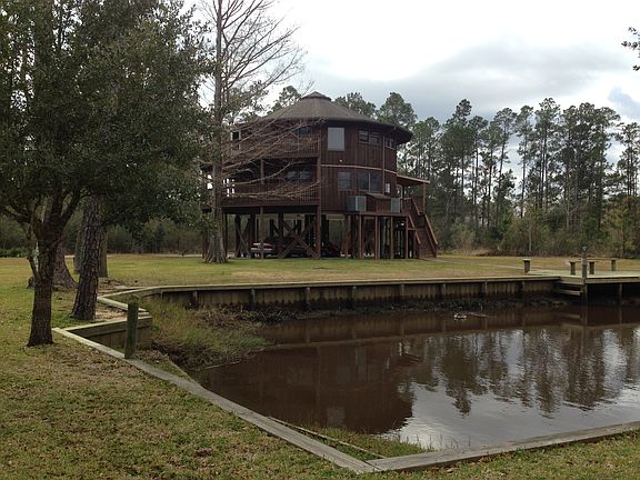 Two stories raised 10 feet above foundation. 15-sided house with 8-foot decks around 7 of 15 sides on both level. Large laundry room, two large showers, and large closets.