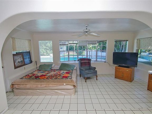 You have got to see the pool at this 3BR/2BA west side home. Large 32'x16' pool with dolphin fountain and swim up table and benches with umbrella holder. Large fenced backyard with banana and mango trees. The L-shaped living room and dining room wrap around the kitchen which is in the heart of the home. Kitchen has wood cabinets and beautiful tile backsplash. Other features are the large archway into the lanai, the skip trowel ceiling, the crown molding, the terrazzo and tile floors, the Carrier 17 seer heat pump, and new roof in 2015. In the back yard is the workshop with electric and AC or as I like to call it - the man's playhouse.