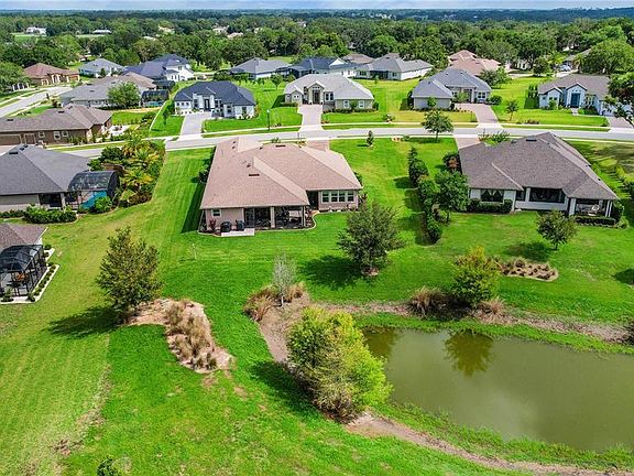 Experience luxury living in this impeccably upgraded 4 bed + Office + Bonus Room + 3 bath home with a rare 4-car garage, built in 2021 and located with a pond view on .48 acre with room for a pool in the desirable Harbor Hills Golf & Chain of Lake community. This one of a kind customized Willow Model featuring 3,432 sq ft heated is sure to impress. From the moment you step inside, you'll notice the soaring ceilings, elegant 6" baseboards, and 7.25" crown molding that add a refined touch throughout. Beautiful porcelain tile plank flooring spans the entire home, providing both style and durability. The chef’s kitchen is truly a showstopper—featuring a gas cooktop, large island with dual-sided cabinetry, upgraded appliances, stylish cabinetry and hardware, a designer tile backsplash, and an upgraded sink and faucet. Ample storage is available in the walk-in pantry and oversized appliance cabinet. All bathrooms have been thoughtfully upgraded with premium countertops, cabinetry, sinks, faucets, and comfort-height toilets. The spacious primary suite (26 x 15) includes a luxurious en suite bath with dual vanities and a large walk-through shower. Additional highlights include a spacious laundry room (6’6 x 20) with upgraded cabinetry and sink, a dedicated indoor storage closet, and an expansive screened lanai with peaceful pond views and ceiling fans for added comfort. This home is equipped for peace of mind with a 24 kWh whole-house generator and a 250-gallon in-ground propane tank, including a gas line to the outdoor grill area—perfect for entertaining. AN ADDED BONUS IS THE EXTREMELY LOW ELECTRIC BILLS that range from $40-$235 throughout the year-WOW!!! Located just minutes to shopping, restaurants, doctors, medical facilities, the Villages Square with nightly entertainment and so much more!