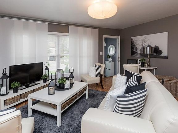 Beautifully refinished 3 bedroom, 1 bathroom home. This home has been refinished starting with new sidewall insulation, new drywall, new interior trim and doors, new flooring, complete kitchen remodel with all new maple full overlay cabinets, plumbing, counter tops, sink, faucet, heated tile floor, backsplash, all kitchen appliances stay including the microwave. Bathroom has tile shower, heated tile floors, and custom cabinets for plenty of storage space. New furnace, water heater and air conditioner. New roof, gutters, foundation finished with efis siding, retaining walls replaced with concrete block and finished, drain tile and concrete channel around the foundation to prevent water intrusion in the home. The front steps and service walk have been replaced and a concrete walk path added on the west side of the home. Large patio area with vinyl privacy fencing.