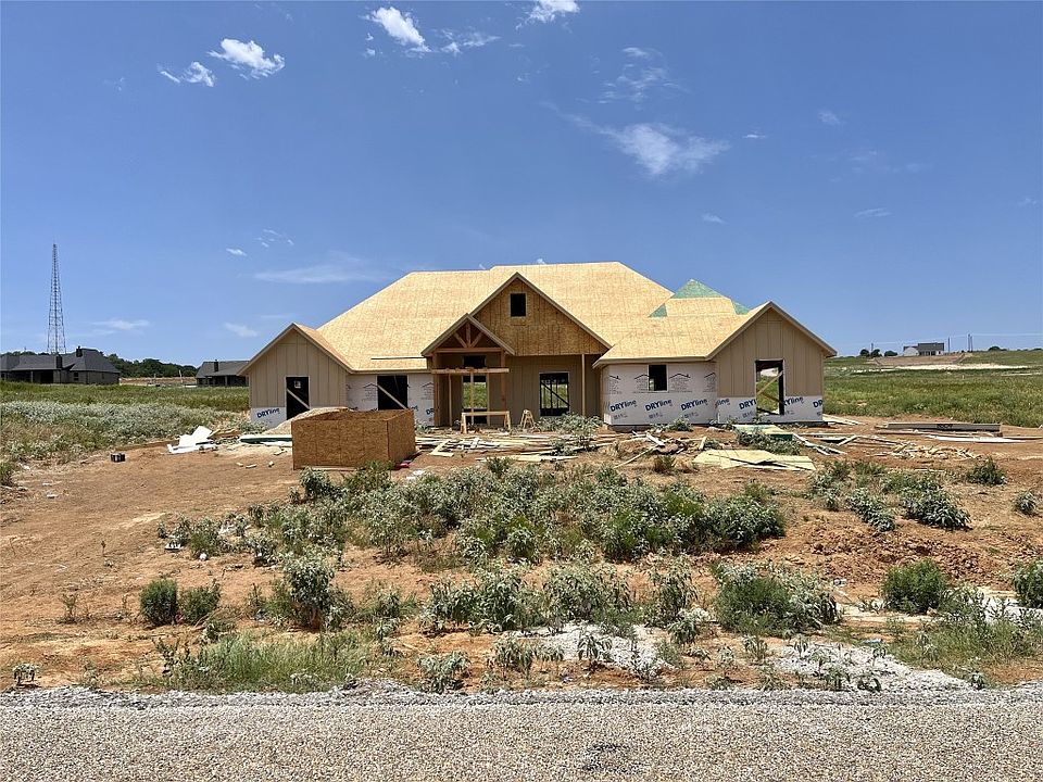 NEW CONSTRUCTION!! This charming 3 bedroom, 2 bath, open concept home is located in beautiful Parker county! Stand out features of the kitchen will excite the cook in the family: custom built cabinets, granite counters, island with seating, walk-in pantry with window, and stainless steel built-in oven and microwave, and dishwasher. The owner's retreat includes a roomy walk-in closet, custom built cabinets with granite counters, double sinks, walk-in shower, and separate garden tub. Tile floors throughout the main areas of the home and carpet in the bedrooms. Located off the foyer, this flexible room can be utilized as a study, home office, or craft room. Entertain, watch the big game, or sit and relax on the back patio by the wood burning fireplace. This cheerful home is ideal for hosting get-togethers with friends and family, working from home, or simply enjoying the country living atmosphere. You'll be happy to call this place your home.