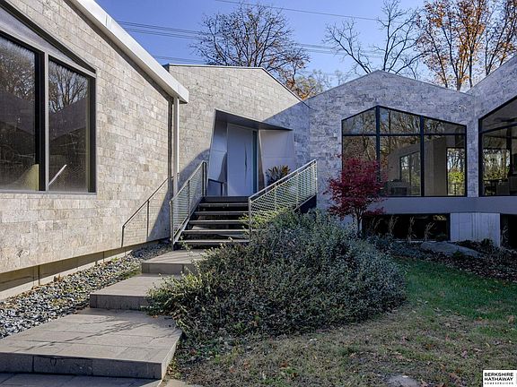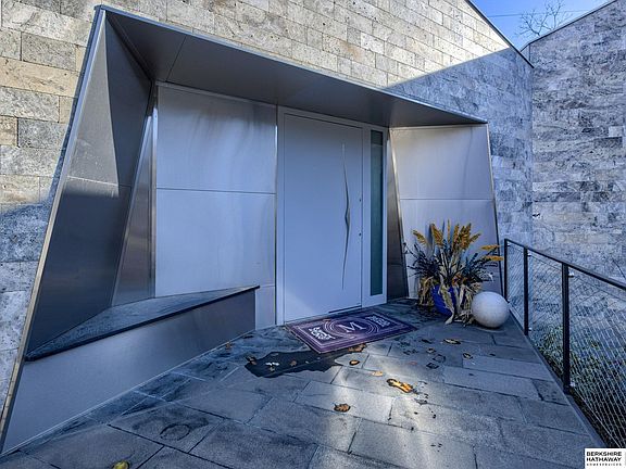 Agent has equity. Selling for almost 50% of original build cost, inquire about this incredible opportunity today! Tucked into the trees, this hidden gem in Country Club Oaks is simply exquisite and truly a show-stopping masterpiece of modern design. This masterpiece left no detail missed. The striking curb appeal greets you with marble exterior, oversized front door with fingerprint reader and oversized, custom windows. Upon entry, the soaring ceilings lead you to the abundantly sized great room w/ linear fireplace. Chef's kitchen complete with Eurowood cabinets, exotic quartz, signature appliances, and loads of storage. Master retreat with volume ceilings, cozy fireplace, and spa-like bathroom. Main floor office/library with custom built -ins, hidden 1/2 bathroom, and private guest suite complete this main floor. Ascend the custom made spiral stairs to the basement to find Omaha's coolest bar with 20+ ceilings, massive rec room, 2 guest rooms.