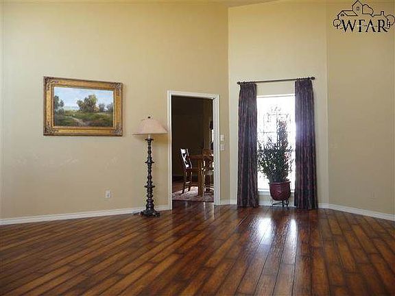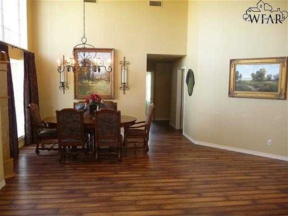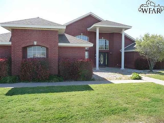 Custom built 3 bedroom, 3 bath home on five acres offers country living and approximately 10 minutes to the heart of Wichita Falls. Spacious open formal living/dining area has soaring 14' ceiling and wood flooring. Family room has tall ceiling, built-ins, wood flooring, and access to the patio and pool area. Kitchen has granite countertops, built-in appliances, tumbled travertine backsplash, recessed lighting, pantry, and large breakfast/serving bar. Utility room has cabinet storage, sink, an...