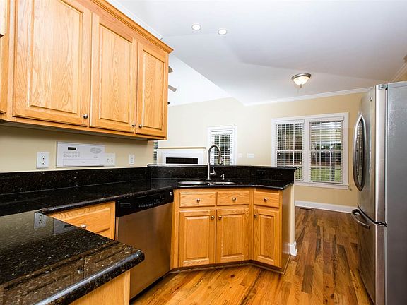 Like new brick front & hardiplank home entirely remoded in 2013 in est'd subd w 2-car garg, screened porch. Hardwood floors in kitchen, dining rm, breakfast rm & foyer, granite counters, SS appliances, nice berber carpet, private tree-lined, fenced backyard, vaulted family rm, 2 story foyer, wired for sec sys, intercom and central vac. 12 min to downtown, 4mi to Cary, 30min RTP, 5 min to Lake Wheeler, across from 25 ac naturalzd area owned by Wake Cty incl pond view.