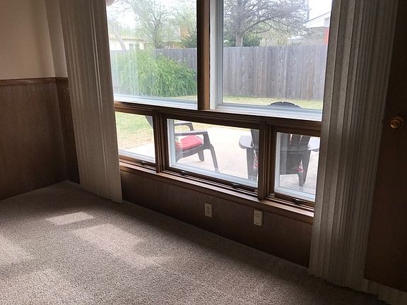 3BR 2 bath all brick ranch with almost 1,700 sq ft of living space. New carpet & pad in all 3 bedrooms & family room. Covered front stoop, tile entry, living room features beautiful hardwood floors, large picture window & built-ins. Formal dining room includes hardwood floor and lots of natural light. Fully applianced kitchen features new oven, newer cabinets, pantry & large eating space with door leading to patio area. Bath off the kitchen area. Family room includes stone fireplace (now gas log), lots of windows & new carpet & pad. Master bedroom includes double closets. Oversized 2 car garage, covered side porch, wood privacy fence, security lights. This home is located at the end of a dead end street that backs to a park for lots of privacy. Walk 90 feet west to park, Edgemoor Rec Center, Rockwell Library. New Central Heating & Air Conditioning, new washer & dryer and new electrical panel.