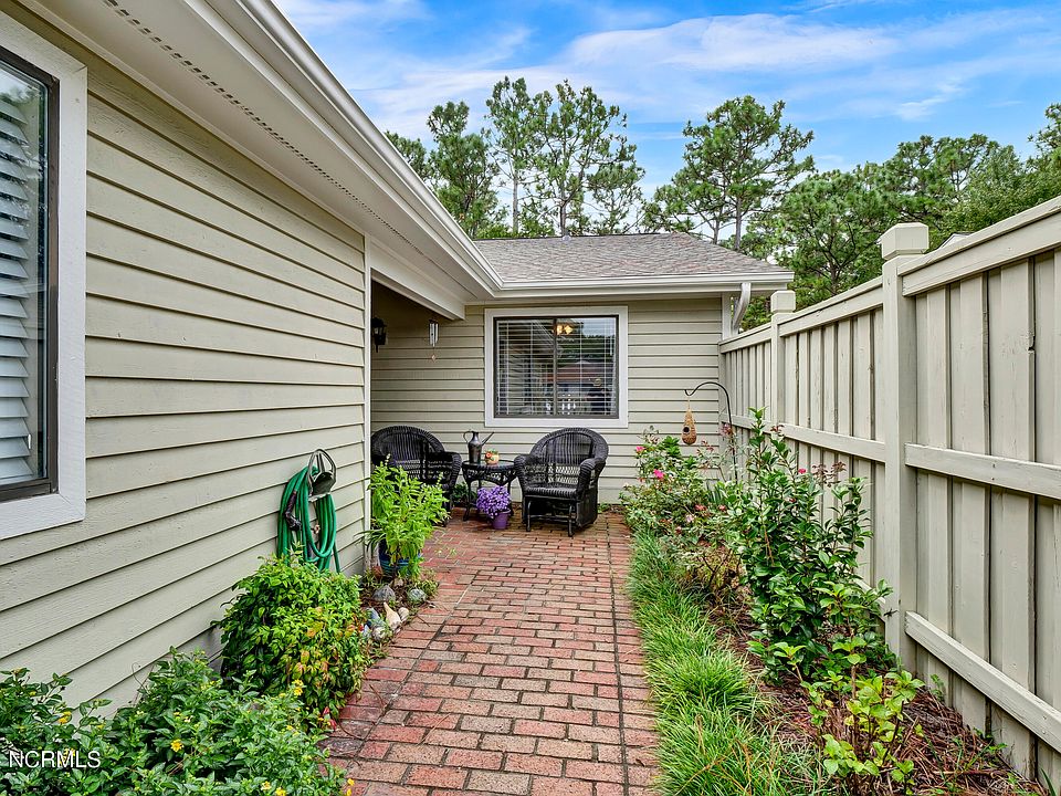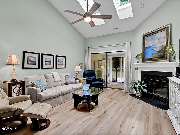 Welcome to this beautiful Inland Greens 3 bedroom and 2 bath home. Great location close to Wrightsville Beach, Mayfaire, UNCW, shopping and Restaurants. This home is move in ready with many updates that include new roof in 2024, LVP flooring throughout the living spaces and updates in both baths. Upon entering the very inviting front court yard/covered porch area you will know your home. Very open floor plan that features a cathedral ceiling and fireplace in the living room, perfect for family gatherings and entertaining. The kitchen is set up for the family cook with stainless appliances, quartz counters, custom back splash, spacious eat at bar and plenty of counter and cabinet space. The large primary suite is the perfect getaway. The sunroom is perfectly positioned for views of the greenway/walking trails and nice size back yard. The recently added back patio/deck is perfect for grilling and relaxing. The home has 2 additional good size bedrooms, interior Laundry area and a spacious 2 car garage. The Inland Greens community offers a good deal of amenities that include community pool, clubhouse, tennis, pickleball and walking trails. Don't miss your opportunity to own this adorable home in this location!