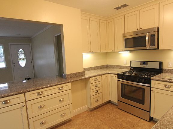 PRECIOUS RENOVATED 4 BED/2 BA, STRIKING KITCHEN WITH GRANITE & SS APPLIANCES, UNDER MOUNT SINK, BAR THAT WILL ACCOMMODATE BAR STOOLS IS OPEN TO LIVING AREA. WOOD FLOORS & CERAMIC TILE, NEUTRAL COLORS, NICE SIZE MASTER BEDROOM WITH HUGE CLOSET. NEW WINDOWS, LIGHT FIXTURES & CEILING FANS. WOOD BURNING FIREPLACE IN DEN, WITH FRENCH DOORS LEADING TO YARD & HUGE COVERED PATIO. WORKSHOP WITH ELECTRICITY PLUS LOTS OF STORAGE. THIS IS A CUTIE!