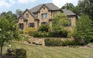 Gorgeous stone and brick home in desirable Chatsworth in heart of N Raleigh. Chef's kitchen, open to hearth room w stone fpl, screened porch & LR w coffered ceiling. Main fl. MBR suite. Fin. lower level w theatre, wine celllar, rec. rm, exercise, family rm w stone fpl in law suite and kitchenette. Wooded views, outdoor fpl, grill & patio for entertaining. All BDs have adj. bth