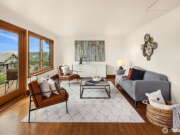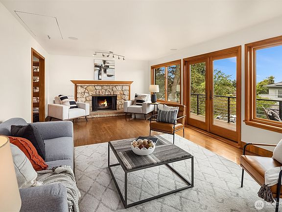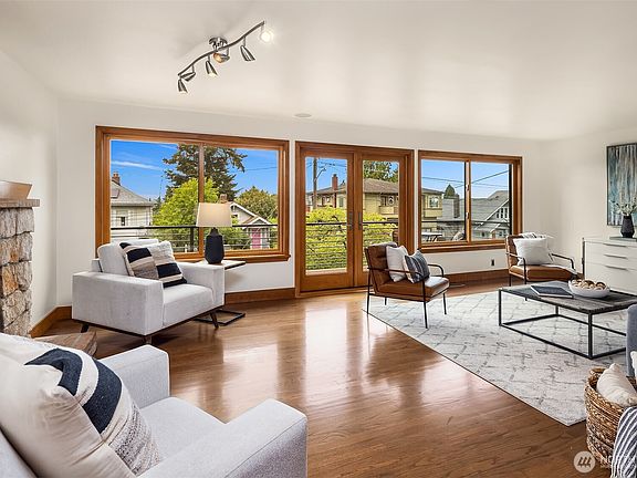 Perched above a quiet street in beloved Phinney Ridge, this updated home blends character with modern comfort. Close to top-rated schools, restaurants, Zoo, Green Lake, Fremont, Ballard and transit access. The main floor offers an open floor plan perfect for relaxing or entertaining. The large, updated chef’s kitchen flows into the dining area with hardwoods and natural light. A spacious living room opens to a deck with exceptional Olympic sunset views. Large bedrooms and closets. The daylight lower level has ample space for guests, work, play and a generous size patio. Heat pump, A/C, Renewal by Andersen thermal windows, updated electrical and solar panels. Detached two-car garage and fenced backyard.