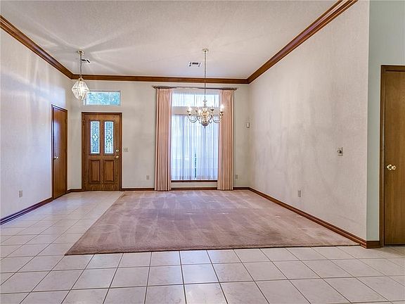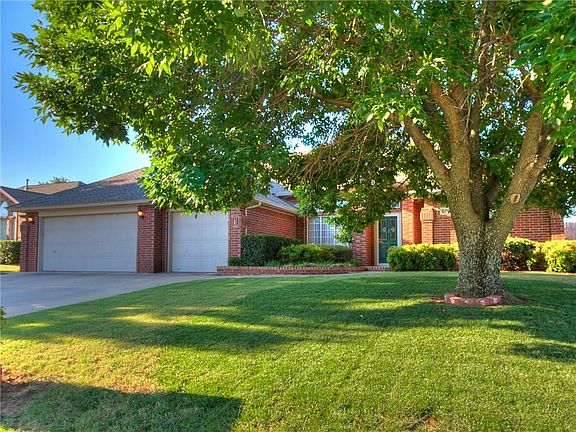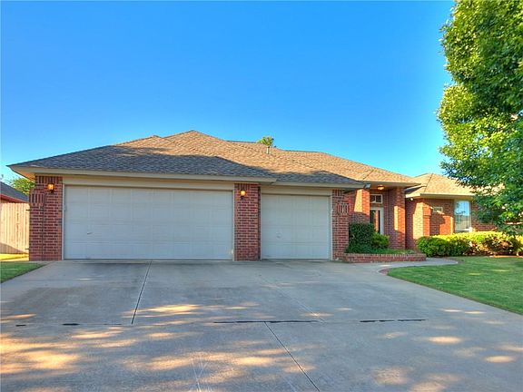 Beautiful brick home w/ 4 bedrooms. Huge open floor plan open to family room w/ fireplace and formal dining. Spacious master bedroom suite, with master bath with dual vanities, whirl pool tub and stand up shower. The master closet has built in storage. House has 3 car garage, with insulated garage doors, in ground storm shelter (seats 8-10 people) and garage is heated. The backyard is a gardeners dream with inground sprinkler system, raised garden pollinator flower beds, and beautiful landscaping you can enjoy from your covered porch. House has a generator. Located within walking distance of Boeing, Northrop Grumman and Tinker Airforce Base.(all on side walks for safe walk or bike ride)