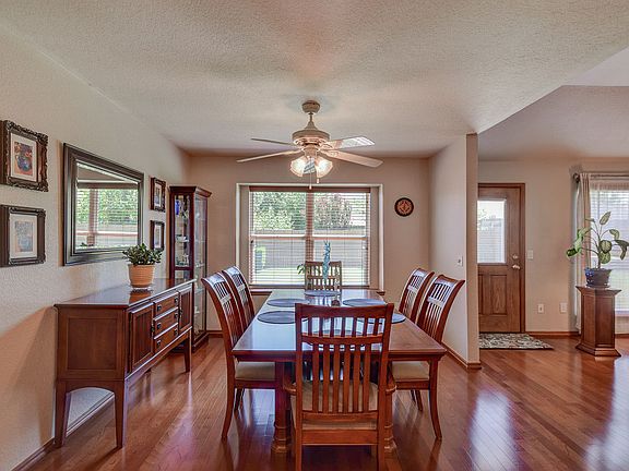 This home has it all and maintained in perfect condition. High ceilings in living area with newer ventless fireplace. Kitchen is large and has been completely remodeled with new cabinets, corian countertops, under and over counter lighting, 5 burner gas stove with convection oven, and built in microwave. The dining room will hold a large table and the Living, Dining and Kitchen are all open. Great home for entertaining guests or a large family. Hall bath has been remodeled along with the master bath. Master bath has jetted tub, large separate shower and newer flooring. Home has been remodeled with Engineered wood floors, Rainsoft water softener with reverse osmosis water filtration system at kitchen faucet, sprinkler system, fully guttered with french drains and lifetime warranty on thermal windows and doors. Carrier Infinity Series HVAC is about 5 years with humidifier & dehumidifier. Garage has additional storage space. Extended patio with well maintained yard.