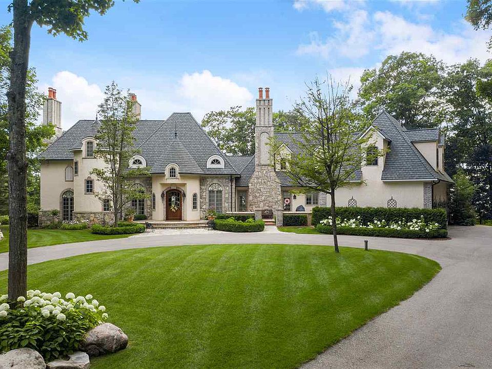 Lovely French Normandy Chateau located in the gracious gated community of Traverse Trace just a short drive north of Harbor Springs. Beautiful architectural elements throughout. The present owner has installed new Fireplaces, windows, as well as professionally designed landscaping. Enjoy the beautiful views of Lake Michigan from the first floor master suite as well as the Kitchen/Dining/family room area and the great room. Plenty of outdoor living space for entertaining family and friends. Separate Private staircases take you to a cozy guest suite or the additional three family bedrooms. This home also has an elevator and an extra large basement that is just waiting to be finished with very tall ceilings. Traverse Trace offers tennis, pickle ball and wonderful walking trails.