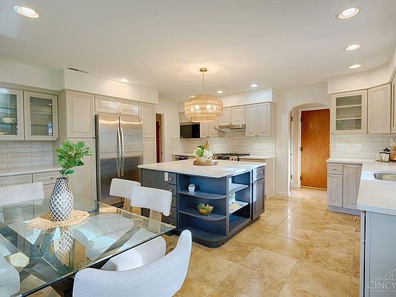 Stunningly renovated 4BD / 2 1/2 BA Cape Cod on a quiet Sycamore Township cul-de-sac with access to the award-winning Indian Hill School District. Features a remodeled kitchen with stainless appliances, quartz counters, large central island, and dining area. Fully renovated baths with double vanity cabinets, floor tiles, and shower area with glass doors. Refinished hardwood throughout first floor, and a newly finished lower level adding 870+ sq ft of flexible space. Laundry areas on main floor and basement. Enjoy fresh paint, new fixtures, keyless entry, 2-car garage, and a backyard seating area. Location just minutes from Kenwood Mall, I-71, dining, and medical facilities. Listing Agent is Partial Owner