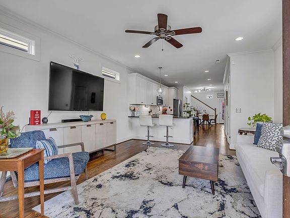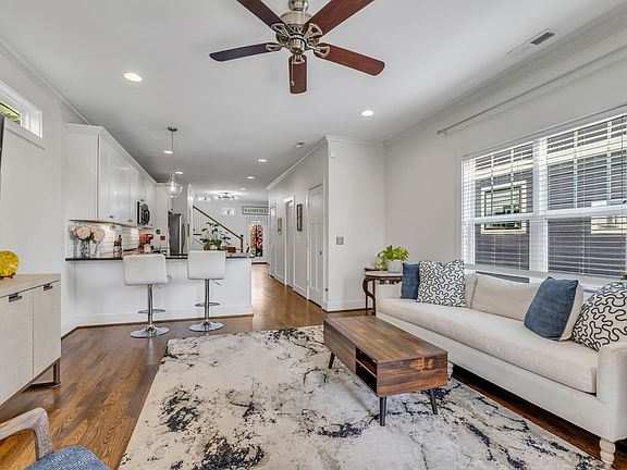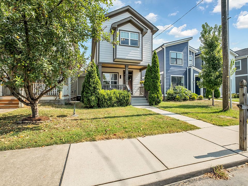Nestled in one of Nashville’s most vibrant neighborhoods, The Nations, this home is just a short stroll to coffee shops, restaurants, and local shops. With quick access to downtown, it offers the perfect balance of convenience and lifestyle. The inviting front porch opens into a bright, open floor plan with stunning hardwood floors throughout. Natural light pours into the living and dining areas, creating a warm and airy atmosphere that flows seamlessly into the kitchen. Here, you’ll find stainless steel appliances, granite countertops, ample cabinetry, bar seating and a pantry—ideal for cooking and entertaining. The main level also includes a stylish powder room, laundry room, and two additional storage closets. A sunlit stairway lined with accent windows leads to the second floor, adding architectural interest to the home. Upstairs, the spacious primary suite is a serene retreat with a walk-in closet, additional storage closet, charming built-in bookcase, and a modern ensuite bath. Two additional bedrooms and a hall bath provide flexible spaces for family, guests, or a home office. Step outside to the fully fenced backyard, where a patio and firepit set the stage for evenings of relaxation or lively gatherings. Landscaping by a master gardener enhance the private urban oasis, while a custom paver parking pad offers convenient off street parking. An exterior storage closet is perfect for bikes, yard equipment or outdoor gear. This home is the perfect blend of comfort, style, and location—don’t miss the chance to make it yours!