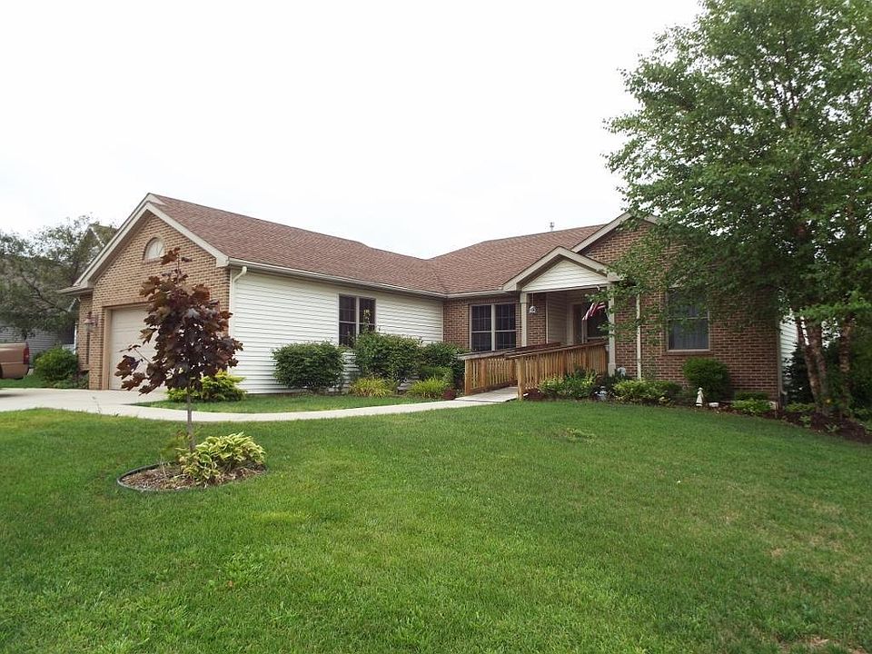 Peterson's Golden Meadows Toledo II (1 Story Brick & Vinyl Ranch). 3 bedrooms, 2 full baths. Features: hardwood floors, 6 panel doors, kitchen with granite countertops, snack bar with peninsula + upgraded cabinetry. Great Room has Gas Fireplace. Master Bedroom with tray ceiling, private bath has whirlpool and walk-in closet. Laundry on First Floor. Large attached 2 car garage with Electric Door Opener. Central Air. Cement Patio. Fenced yard. Handicap accessible. Close to I-94, shopping + restaurants. Needs TLC. $100/yr HOA. Basement stubbed for future half bath.