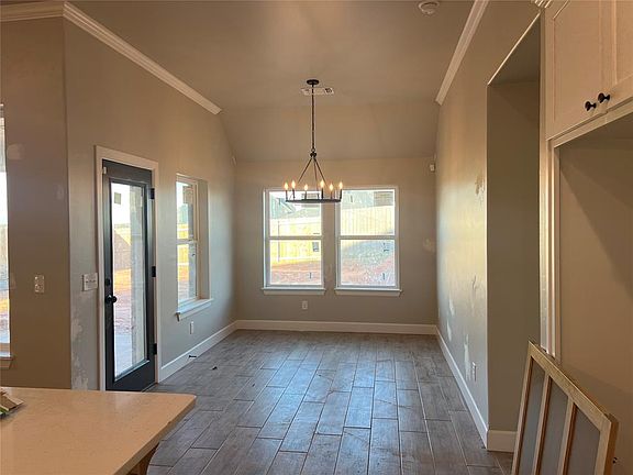 The Fenwick, situated in Covell Valley, is a part of the highly desirable Edmond school district and features the Au Natural design package. This home boasts an inviting covered front porch, a 3-car garage, and a beautiful farmhouse exterior. Upon entry, you'll find a flex room perfect for a home office, hobby space, or playroom for the kids. The living room, with a gas fireplace and wood tile floors, seamlessly flows into the kitchen with a large island, pull-outs in lower cabinets, and quartz countertops. The dining room, with ample natural light, accesses the back patio, making it great for entertaining. The primary suite features a 6ft tub, walk-in shower with Schluter waterproofing, and a massive walk-in closet. The other two bedrooms occupy the opposite side of the home, sharing a full bathroom and extra linen closet. Close to the garage entry, you'll find a mudroom, coat closet, and half bath. Some other features include a smart system, a healthy air filtration system, a tankless water heater, a sprinkler system, and storm shelter. Sitting on a 0.17 acre lot and has a covered back porch facing northeast for some nice shade in the evenings. This Zero Energy Ready Home is unrivaled among other energy-efficient homes with its superior design and construction. Adhering to the highest standards for energy efficiency, comfort, and air quality, it promises long-term savings. Some innovations include a thermal enclosure, water and moisture barrier, ENERGY STAR® appliances, high-performance windows, a perfectly sized HVAC system, and so much more. The Covell Valley community is in a high demand area being only 1 mile from the I-35, close to some of the best schools, and a family friendly neighborhood with a pool and clubhouse in the works.