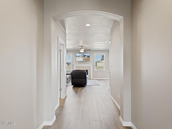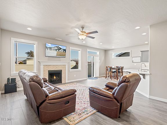 This Hudson model home built in 2022 is a 3-bedroom 2-bathroom home that has a 3-car attached garage that includes a 4-foot extension. This is better than new, considering you get an already fenced backyard, blinds on some of the windows and a refrigerator. The open concept living room, dining room and kitchen offers quartz countertops, soft close cabinets and a gas fireplace to cozy up to while enjoying your favorite shows.