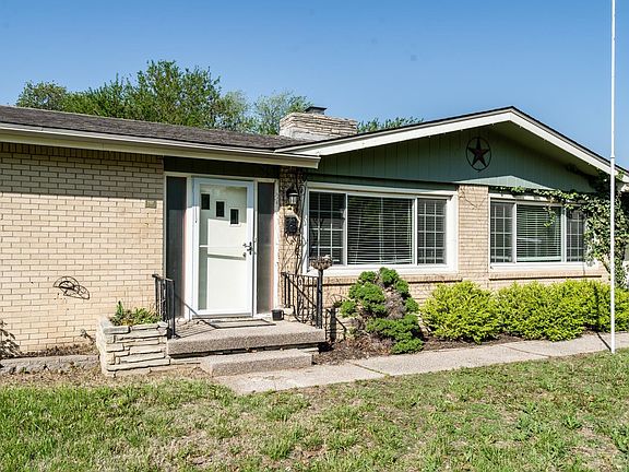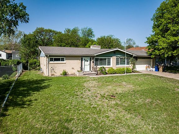 Don't miss it! This attractive brick ranch is expansive and includes two oversized bedrooms, large full bathroom with updated 2-sink vanity along with built-in storage and closets, a large kitchen with tons of white cabinetry, updated stainless steel appliances, pendant lighting, window at the sink, bar seating, breakfast nook and sliding glass door leading to the fenced in backyard. The washer and dryer is conveniently located in the back closet of the kitchen and stay! The house also features a large living room with big front windows, custom blinds, white trim, updated interior paint, solid wood floors and an oversized two car garage with built-in work bench and storage closet. This home is a great space that could be called home or used as an investment rental property. On a quiet street with shade trees and attractive curb appeal, this one is a great deal!